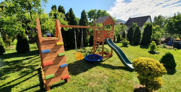 Szimba fa kerti játszótér,csúszdával,hintával,mászófallal