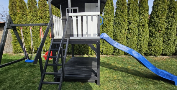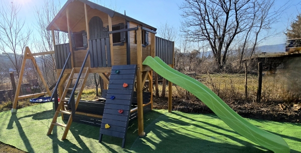 Házikós fa játszótér , csúszdával,hintával,mászófallal